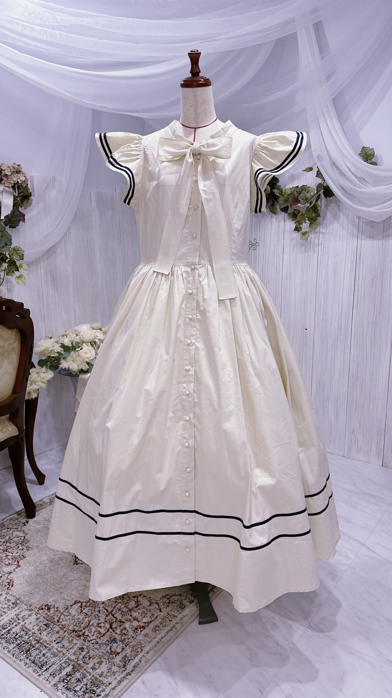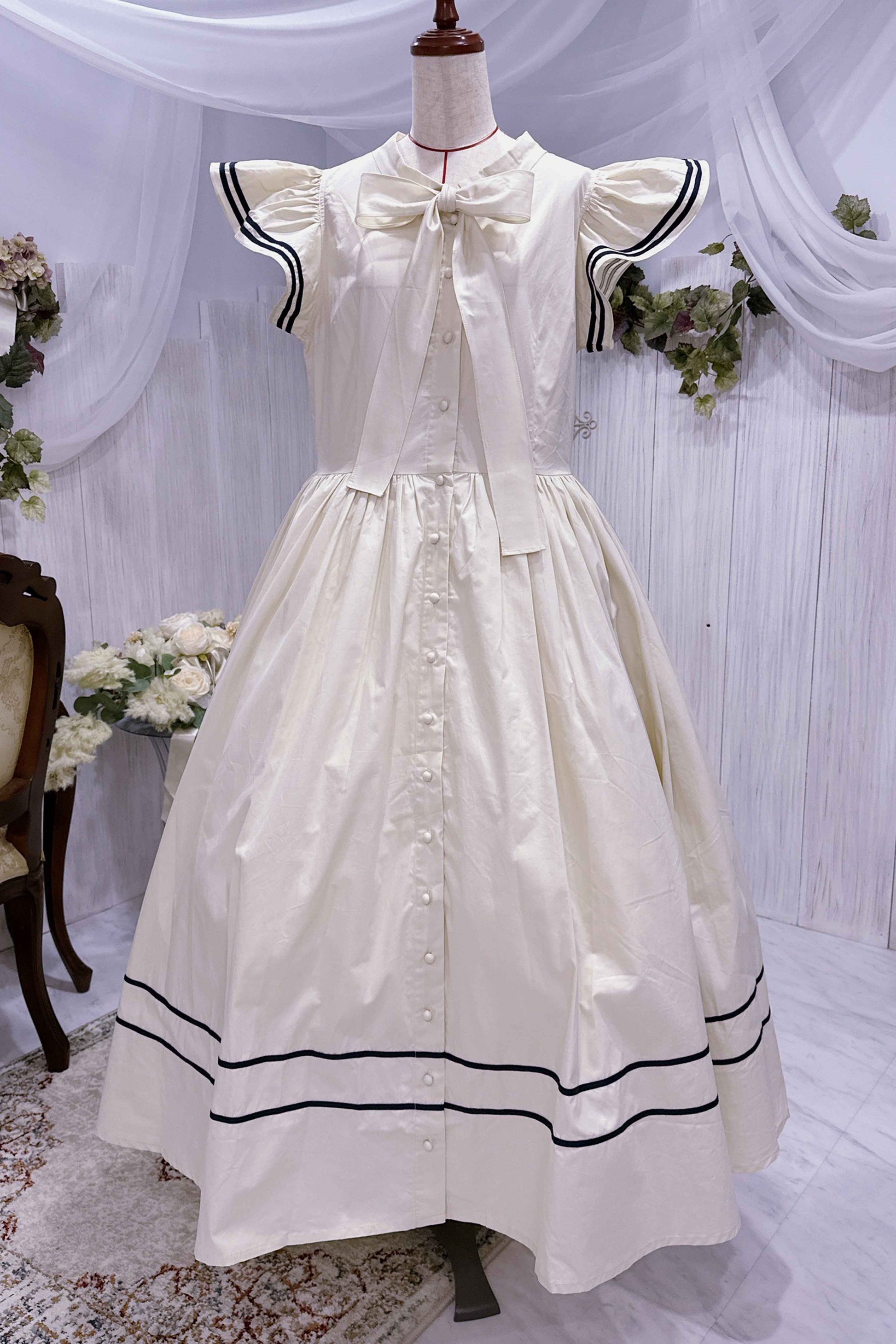 肩フリル 前ボタンセーラーワンピース【Baroque】