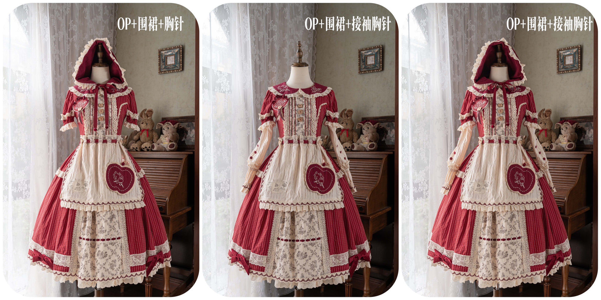 ワンピース・セット3(ワンピース・つけ袖・エプロン・ケープ)