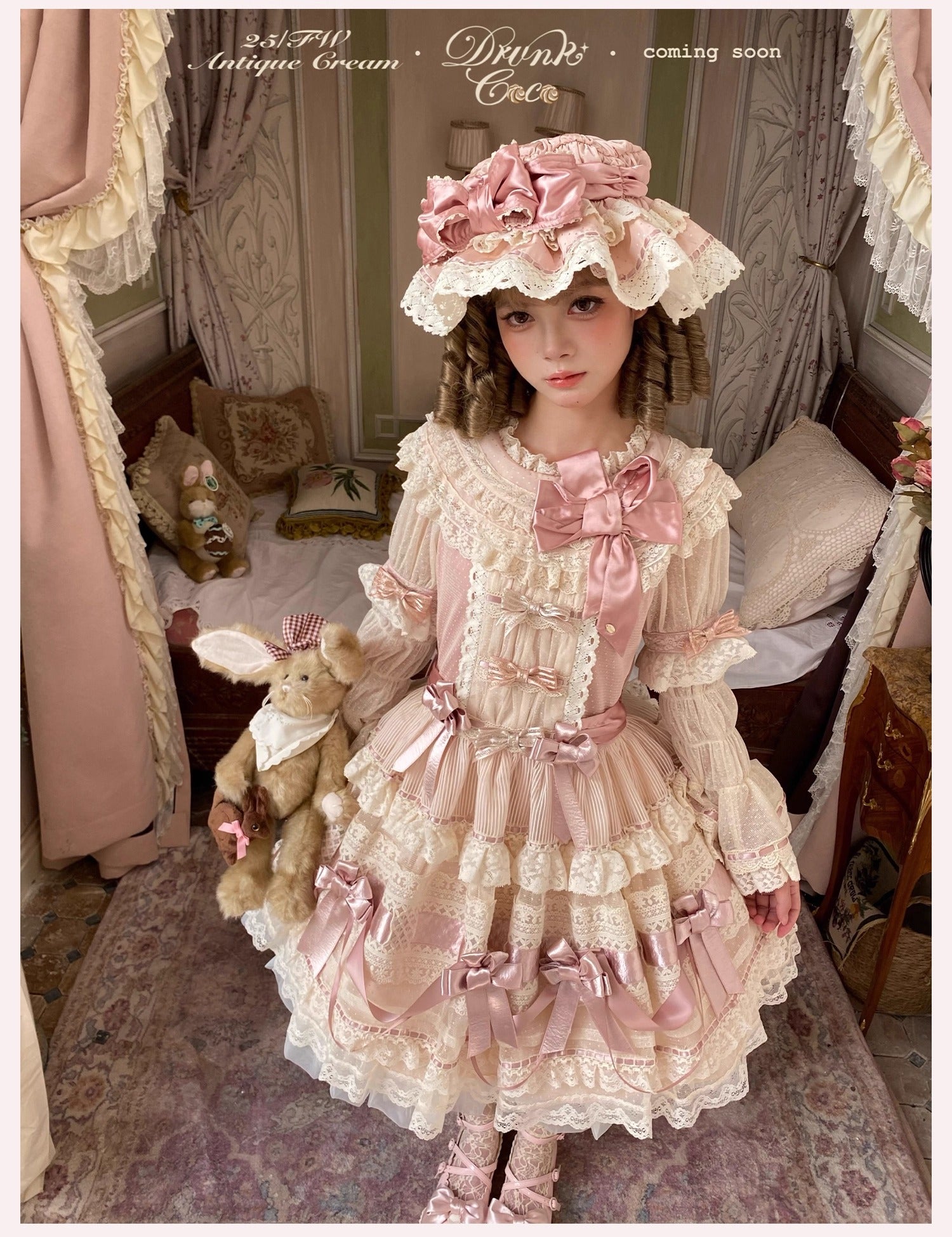 > 【受注予約~10/9】Antique Cream ワンピース【DrunkCoco】