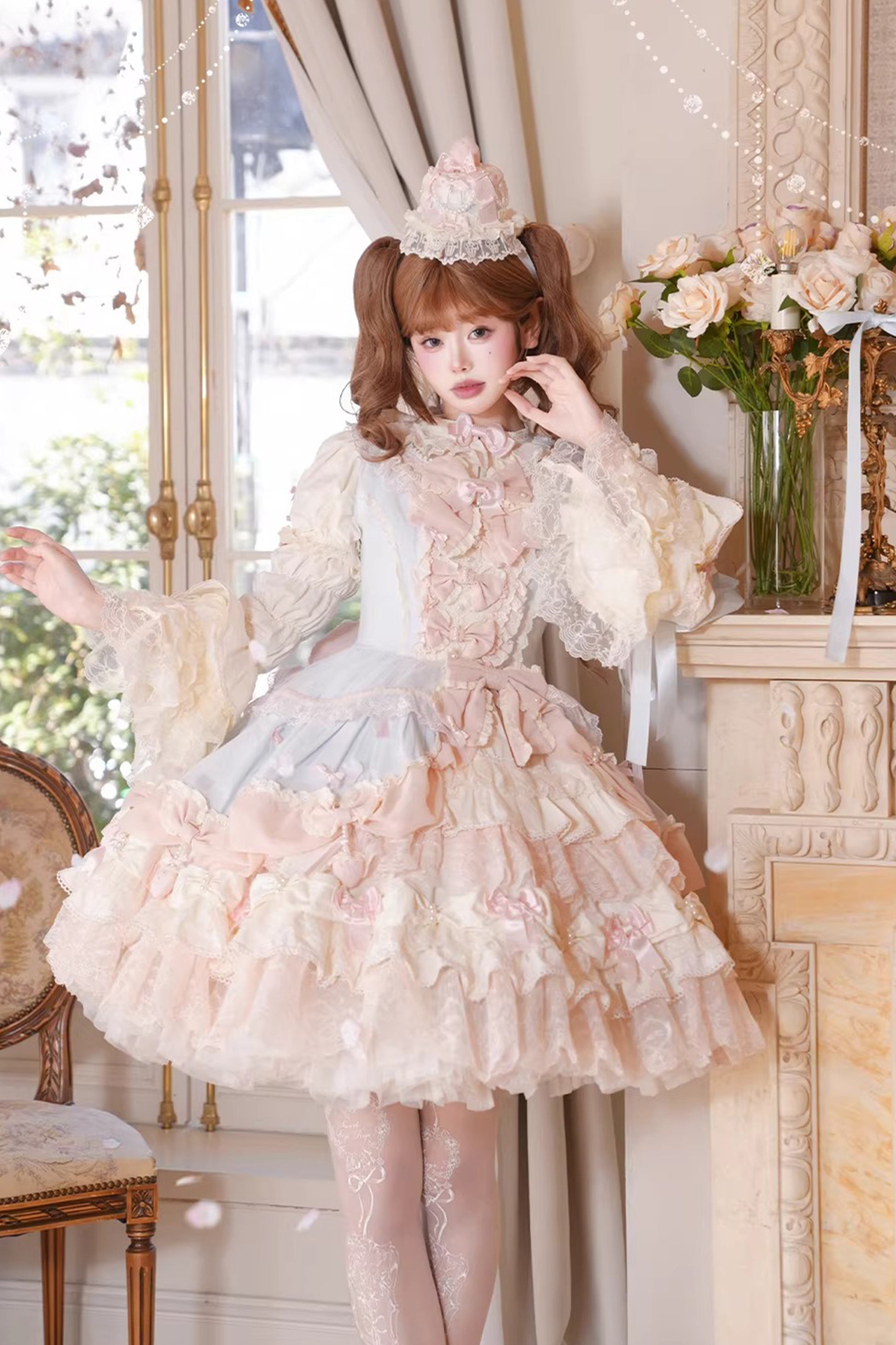 リボンヴェールセット・ロング丈:ジャンパースカート、インナースカート、インナートップス、リボンヴェール、つけ袖、エシャルプ