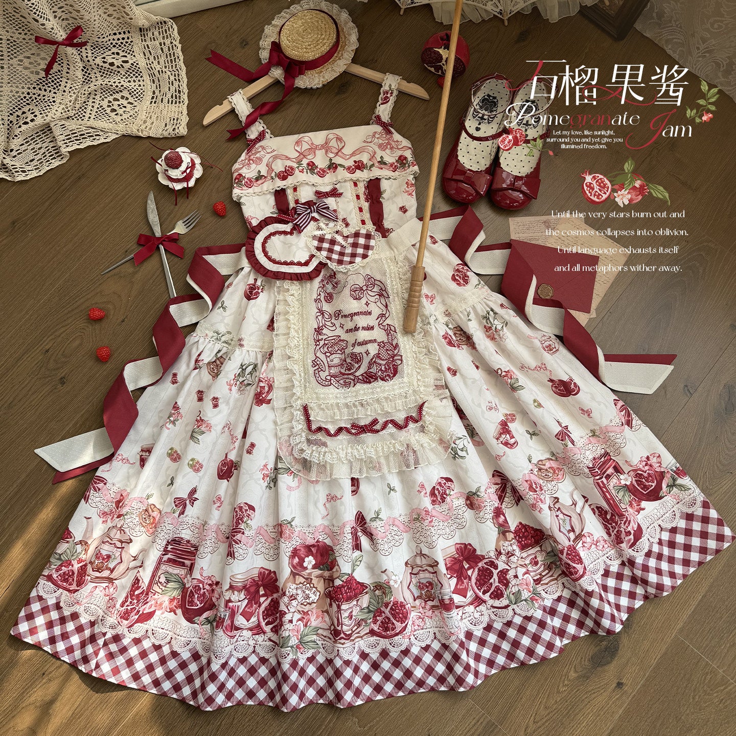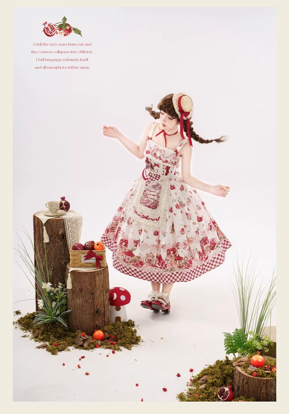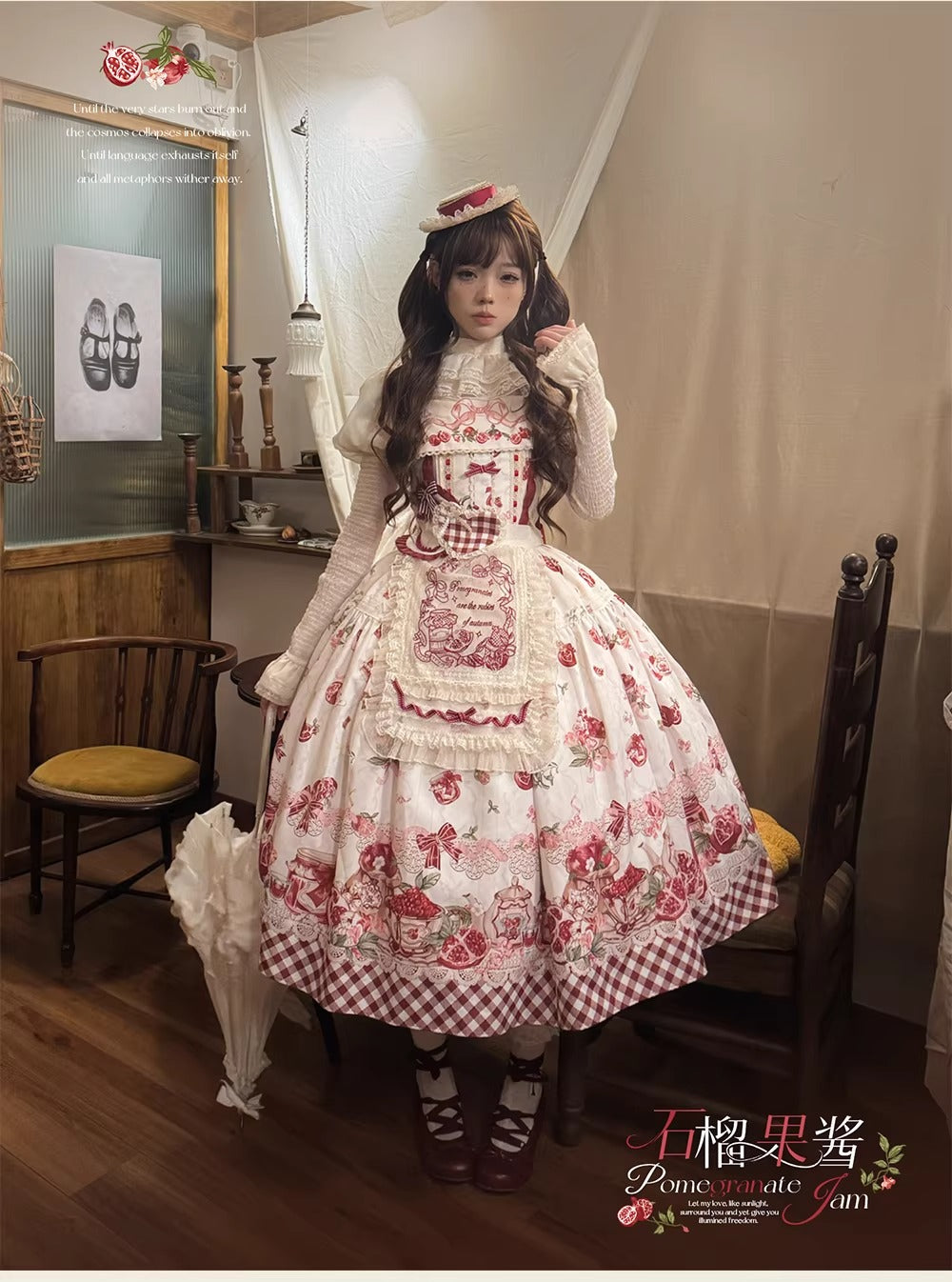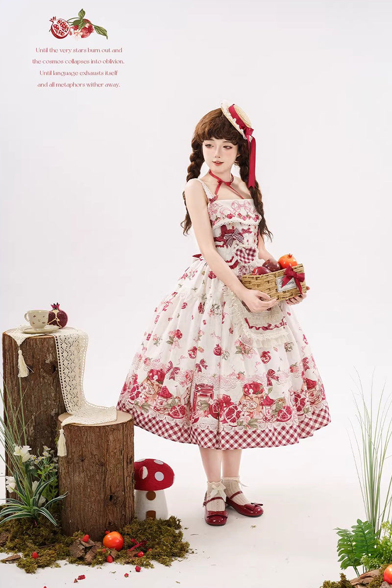【受注予約~3/23】ザクロジャム エプロン付きジャンパースカート・ミニハットセット【草莓空想曲】