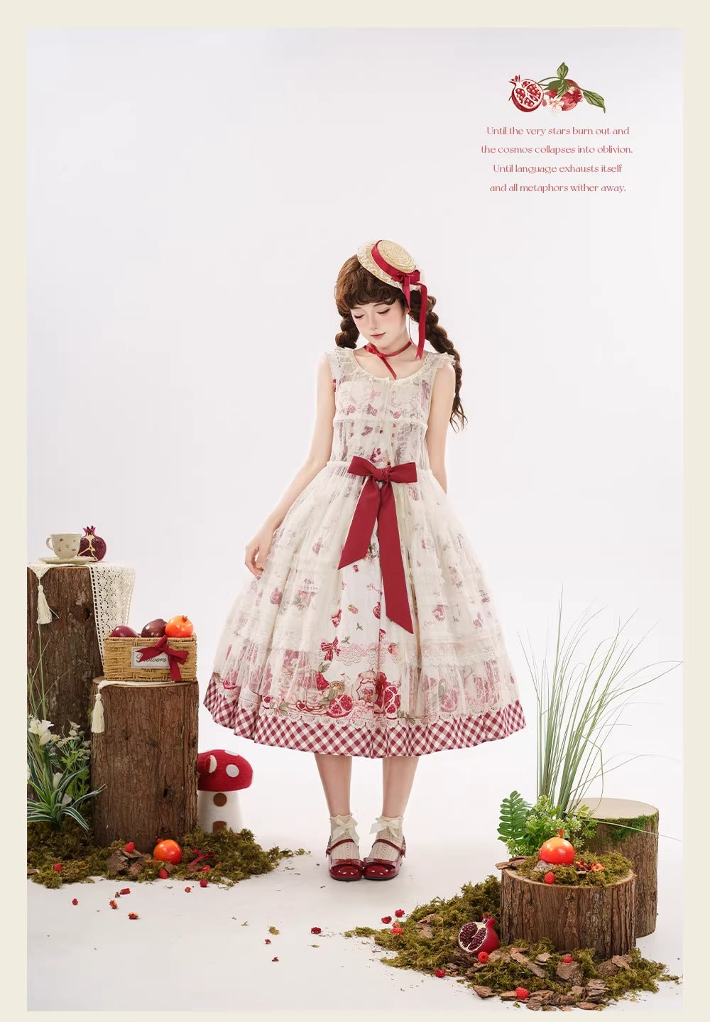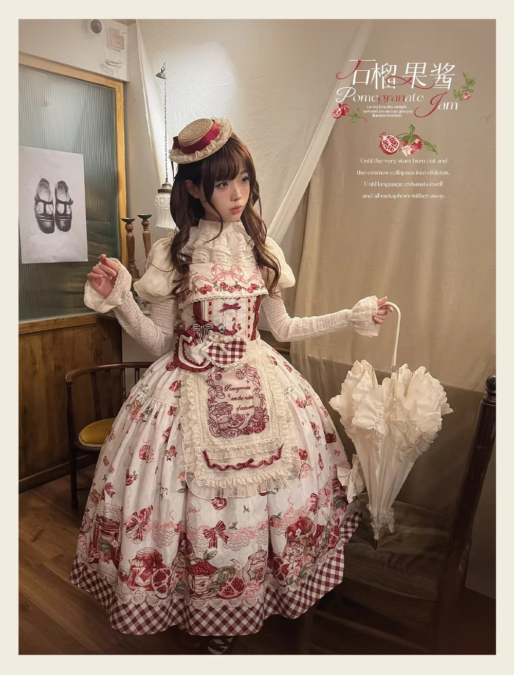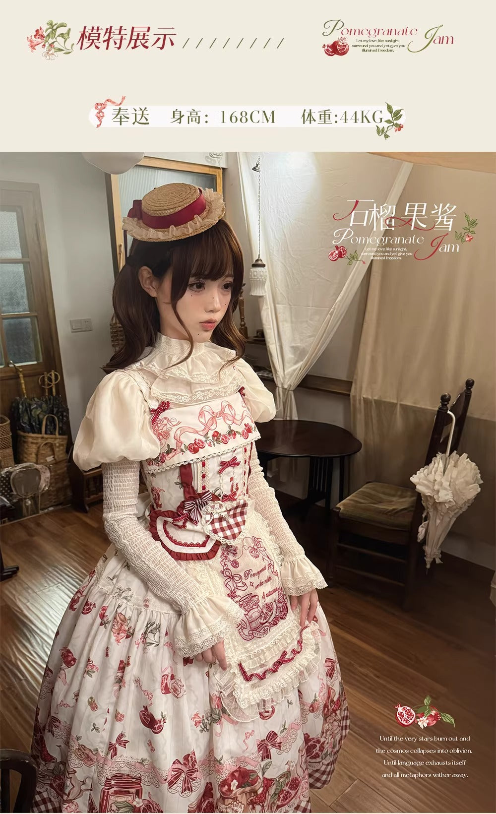 【受注予約~3/23】ザクロジャム エプロン付きジャンパースカート・ミニハットセット【草莓空想曲】