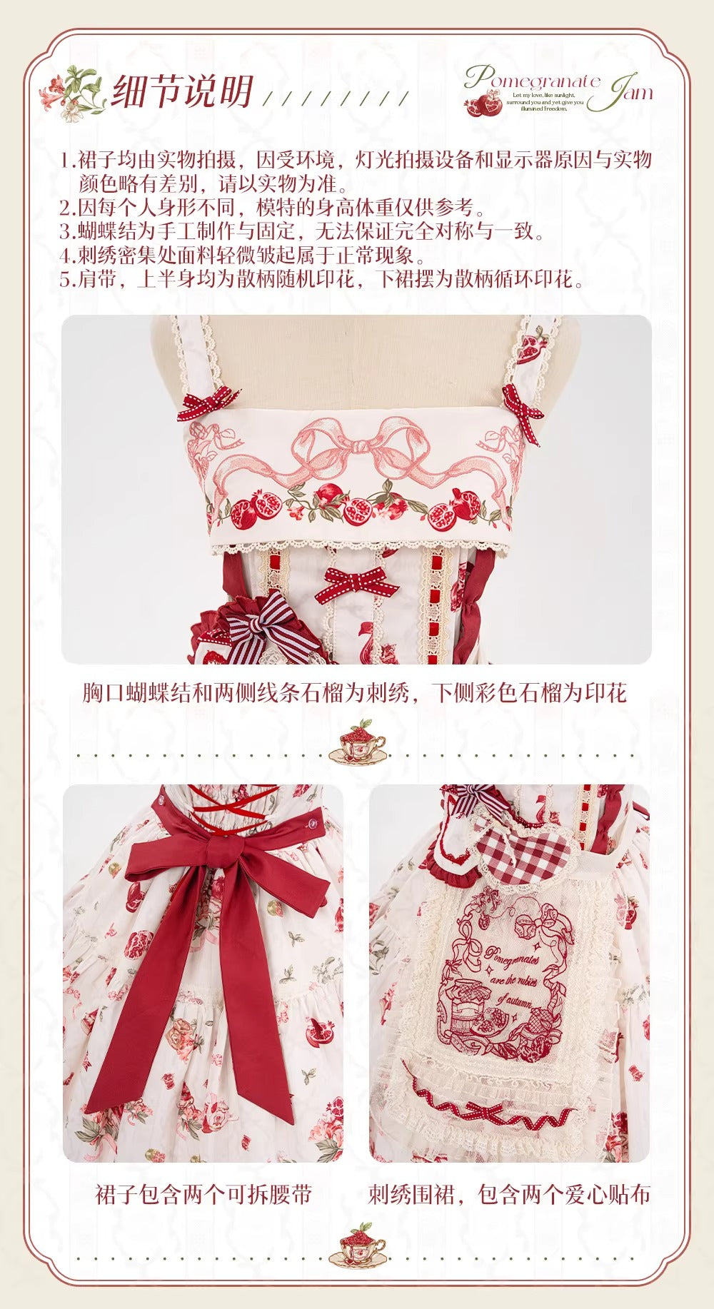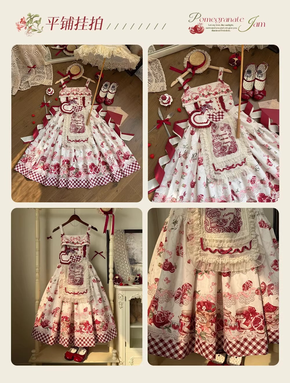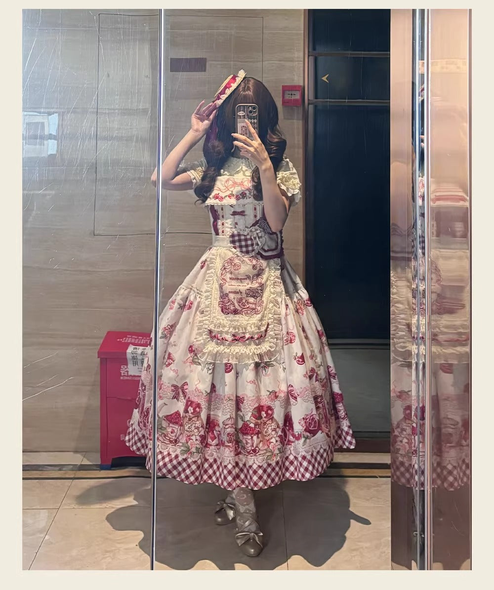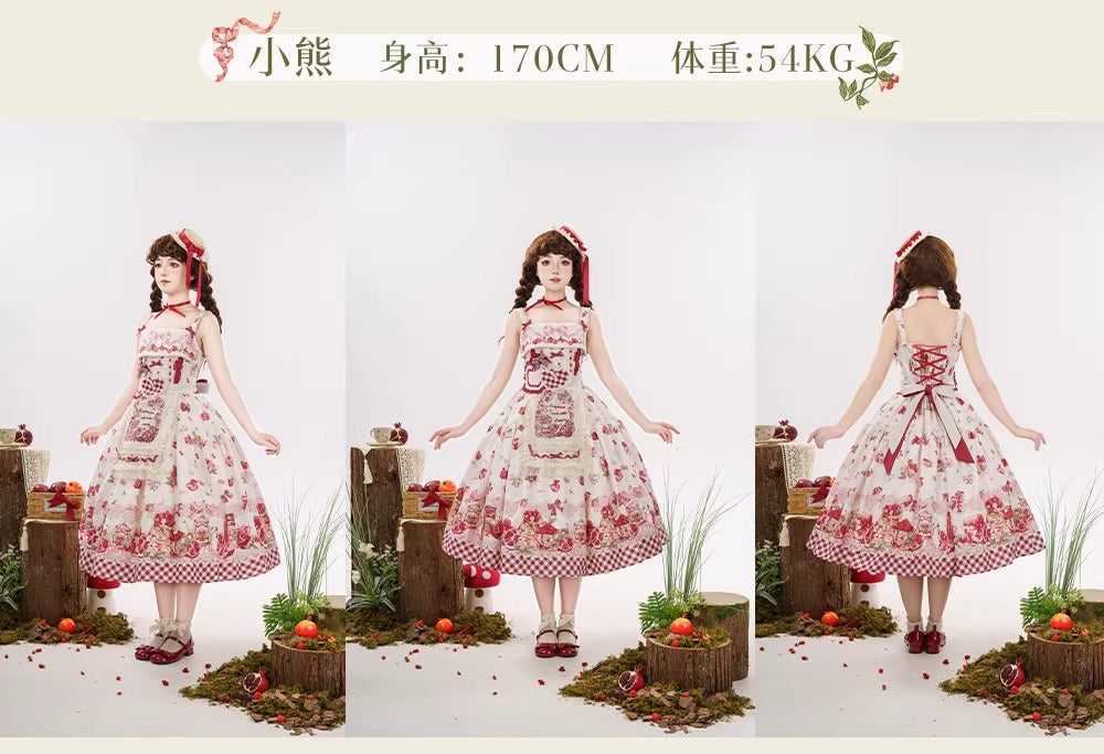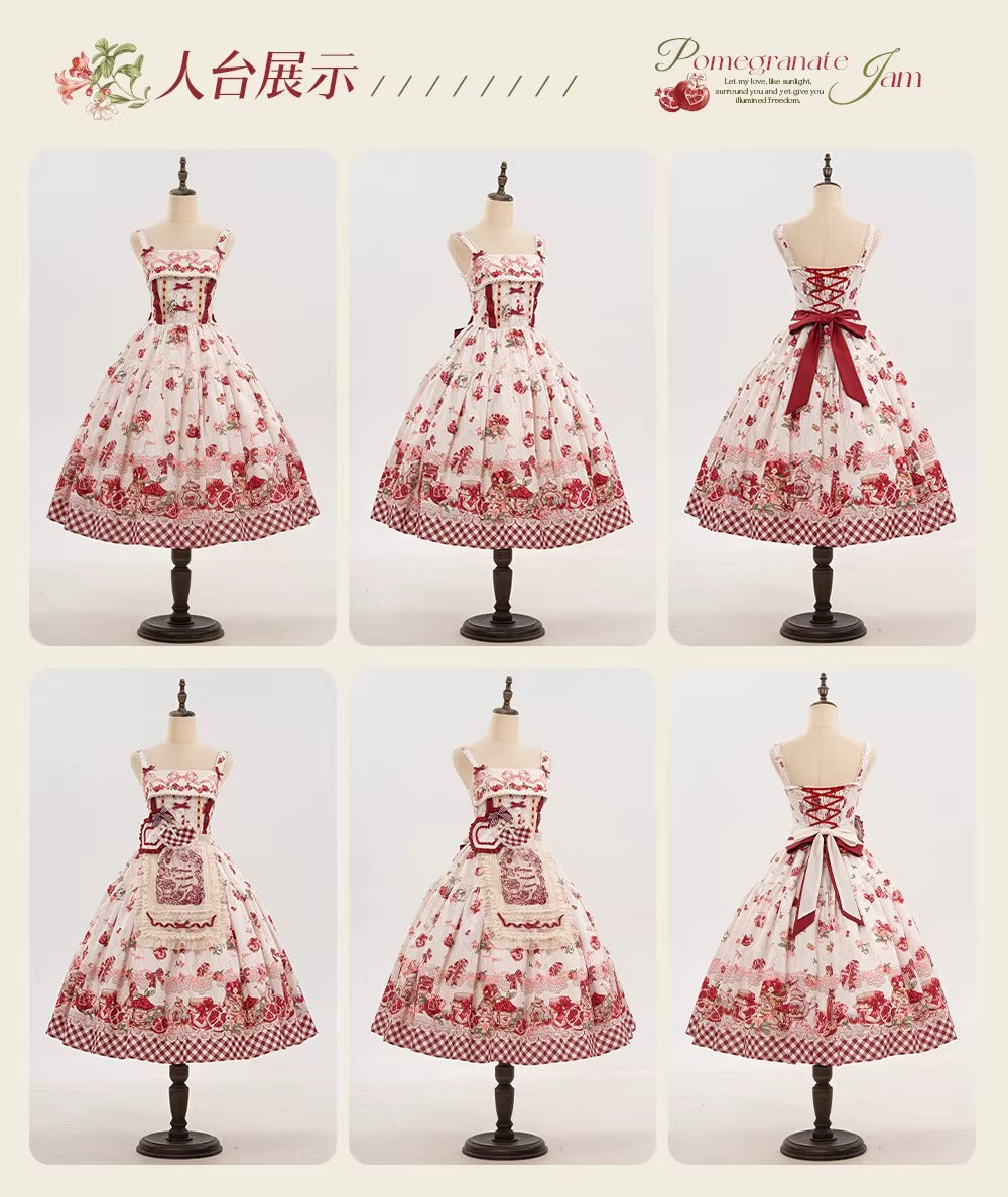 > 【受注予約~3/23】ザクロジャム エプロン付きジャンパースカート・ミニハットセット【草莓空想曲】