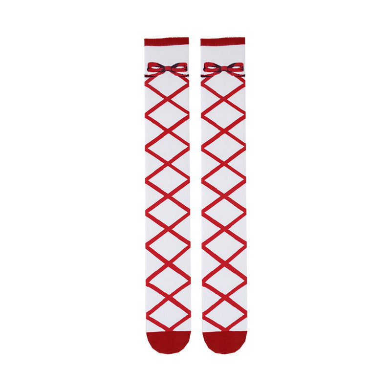 > 編み上げリボン ニーハイソックス【Roji Roji】