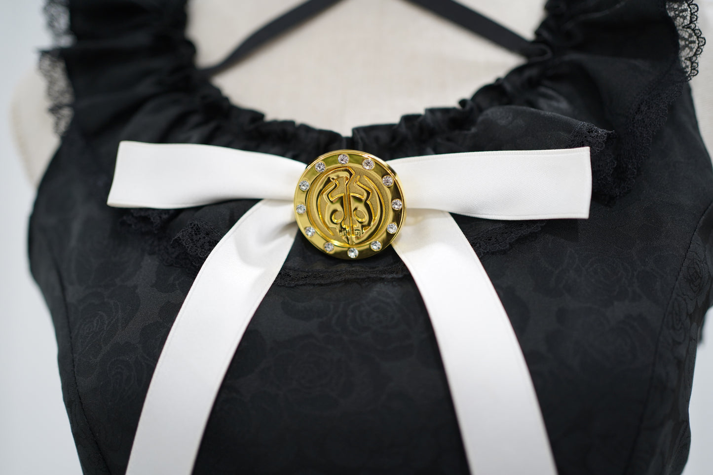 死に神ちゃんの胸元のリボンにピンバッジをプラス!