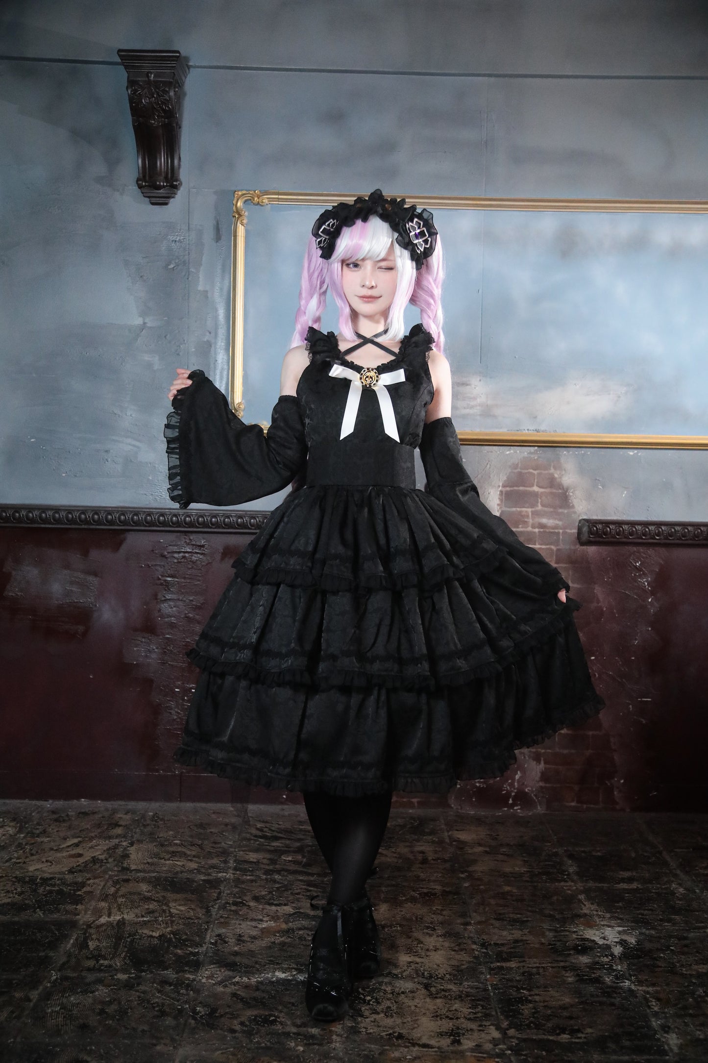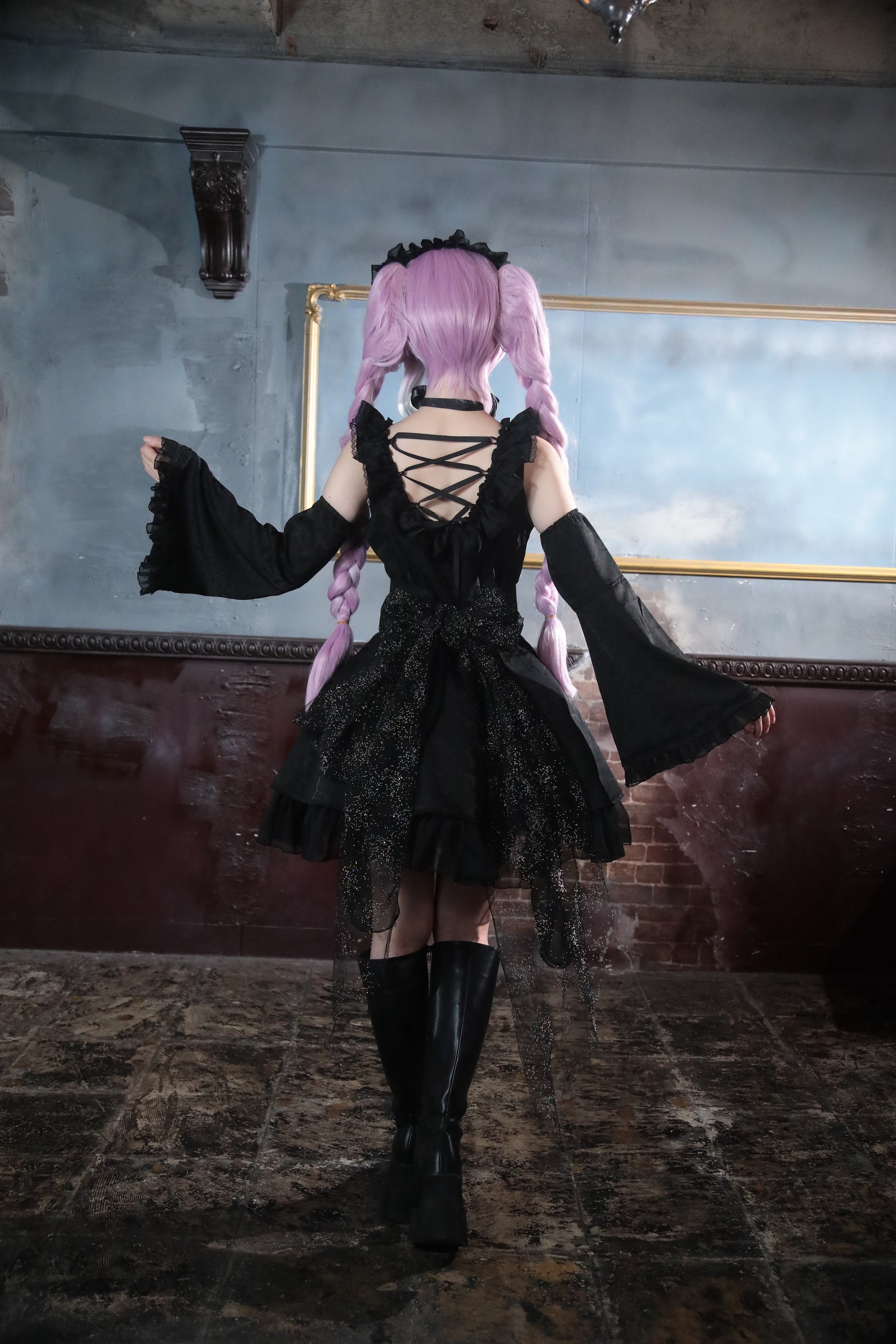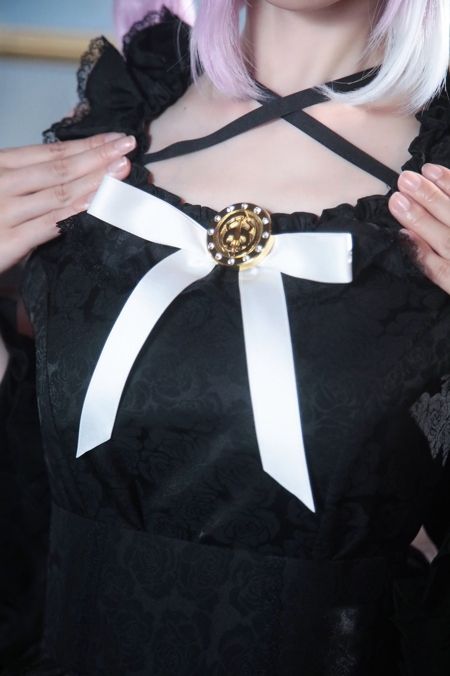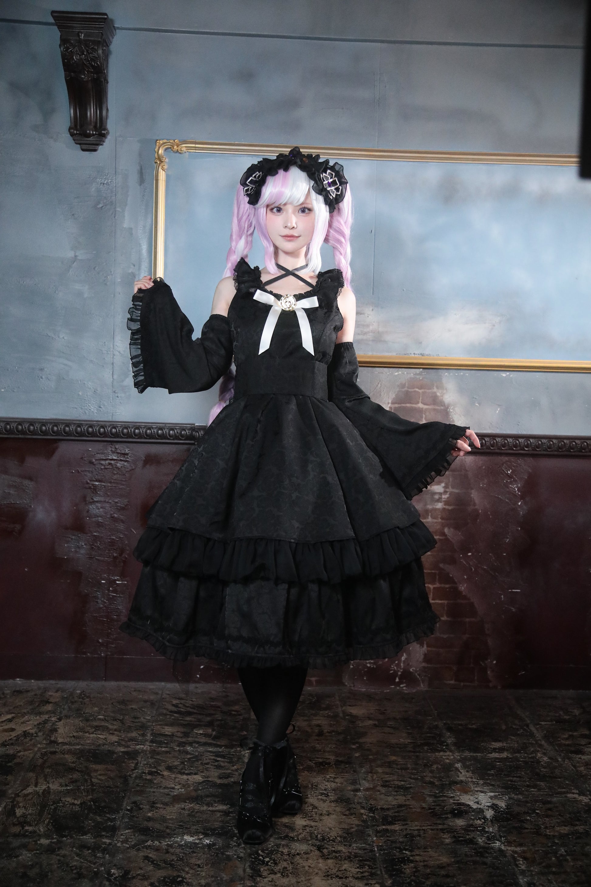 死に神ちゃんらしいディテールを再現しつつ、ミニ丈ロリィタワンピースとしての可愛らしさをプラス。