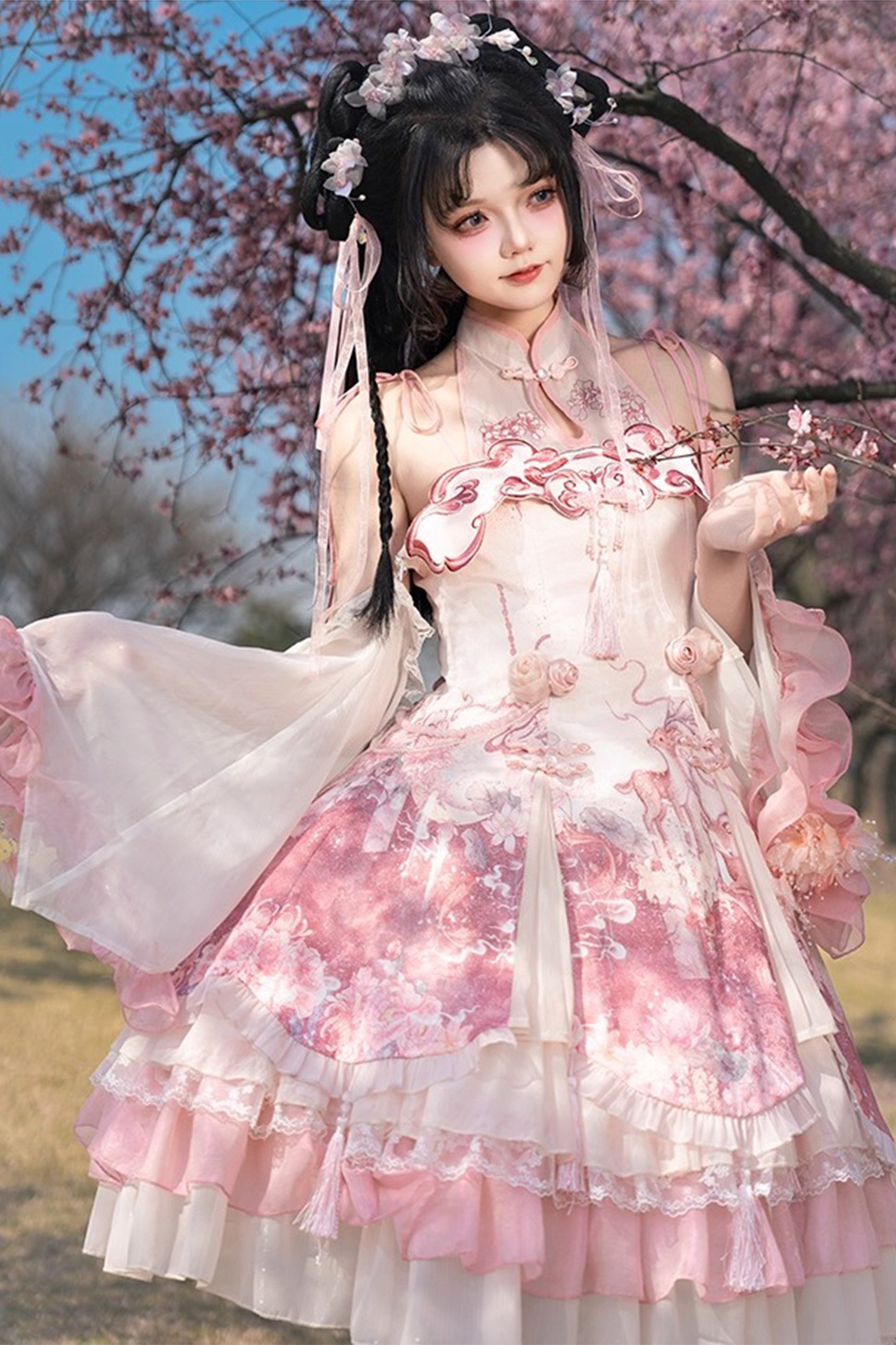 > 花の宴 チャイナ風ワンピースセット【Melonshow】