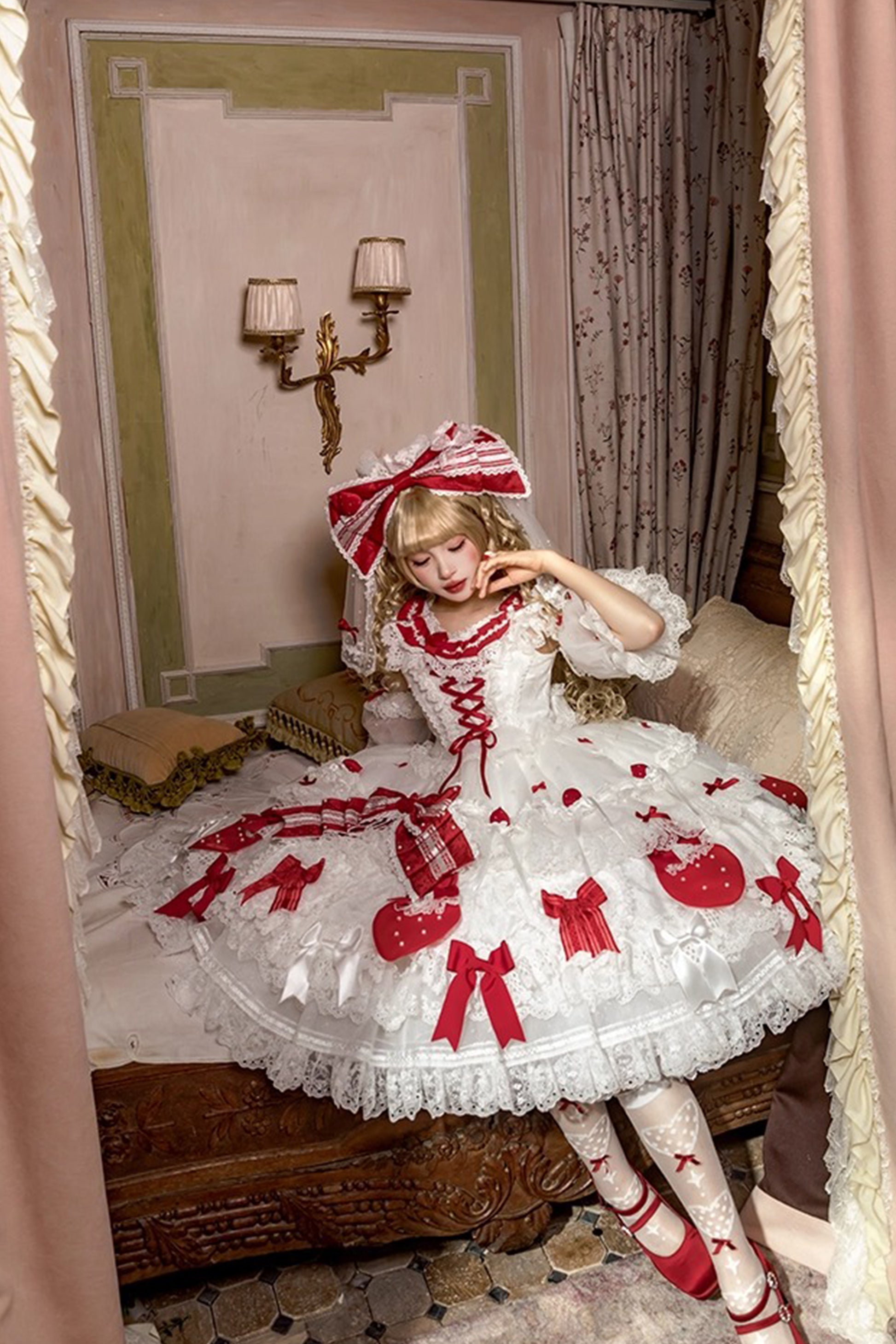 > 【受注予約~11/18】Strawberry Cake Illustration ワンピース(タイプ1)【花与珍珠匣】