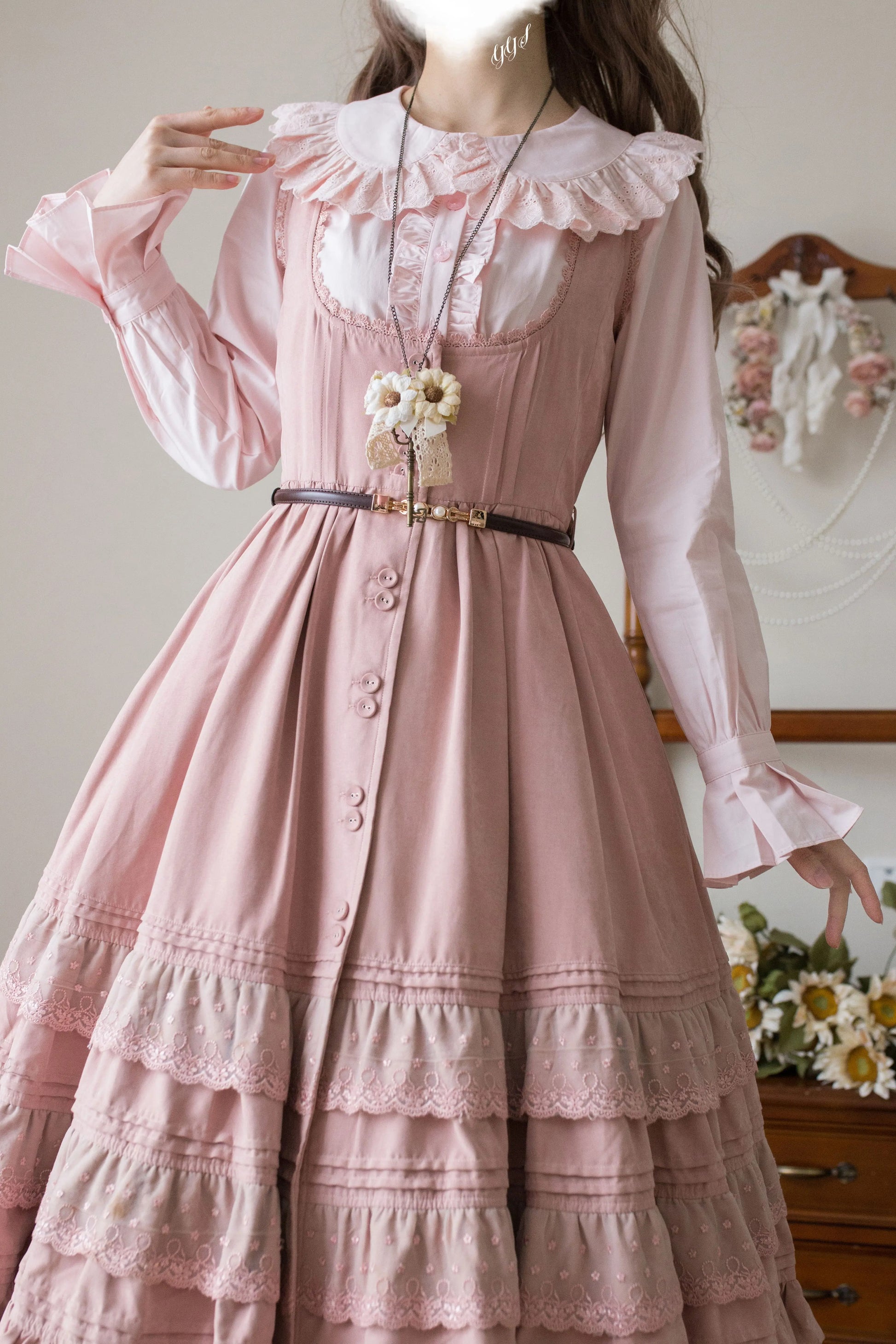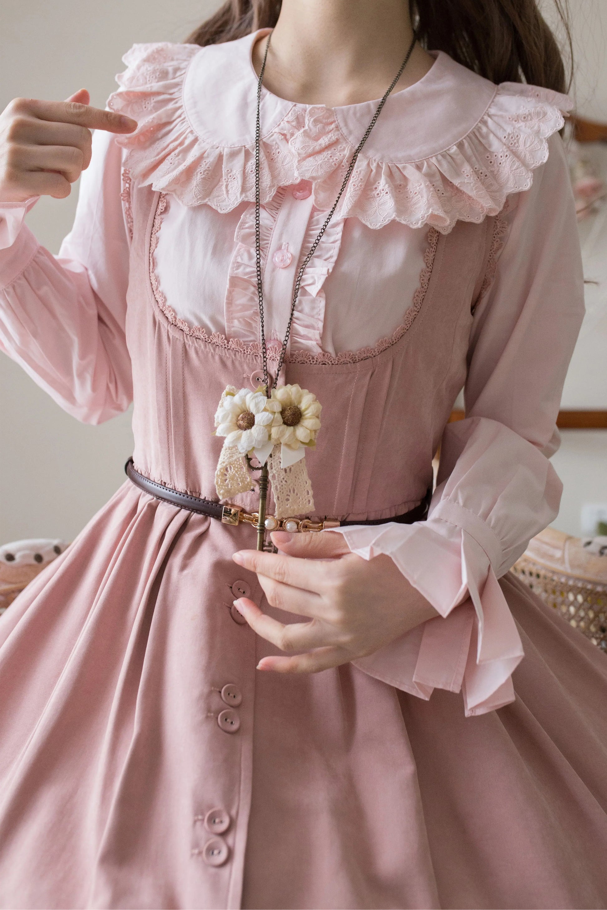 > 綿レース長袖ブラウス【MIST】