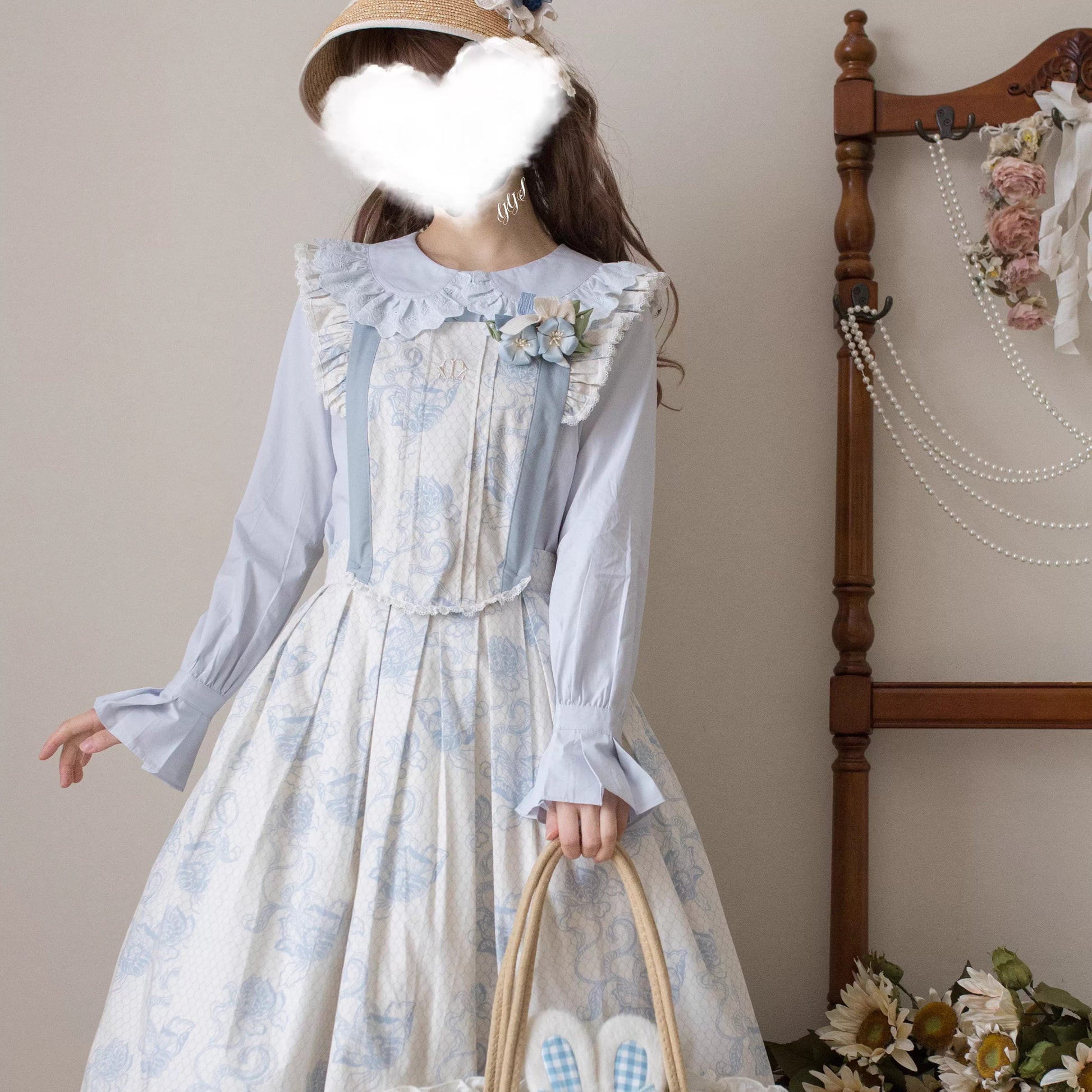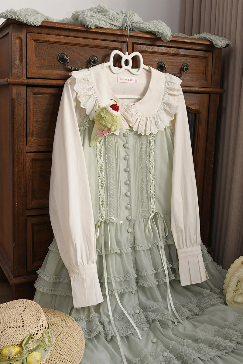 綿レース長袖ブラウス【MIST】