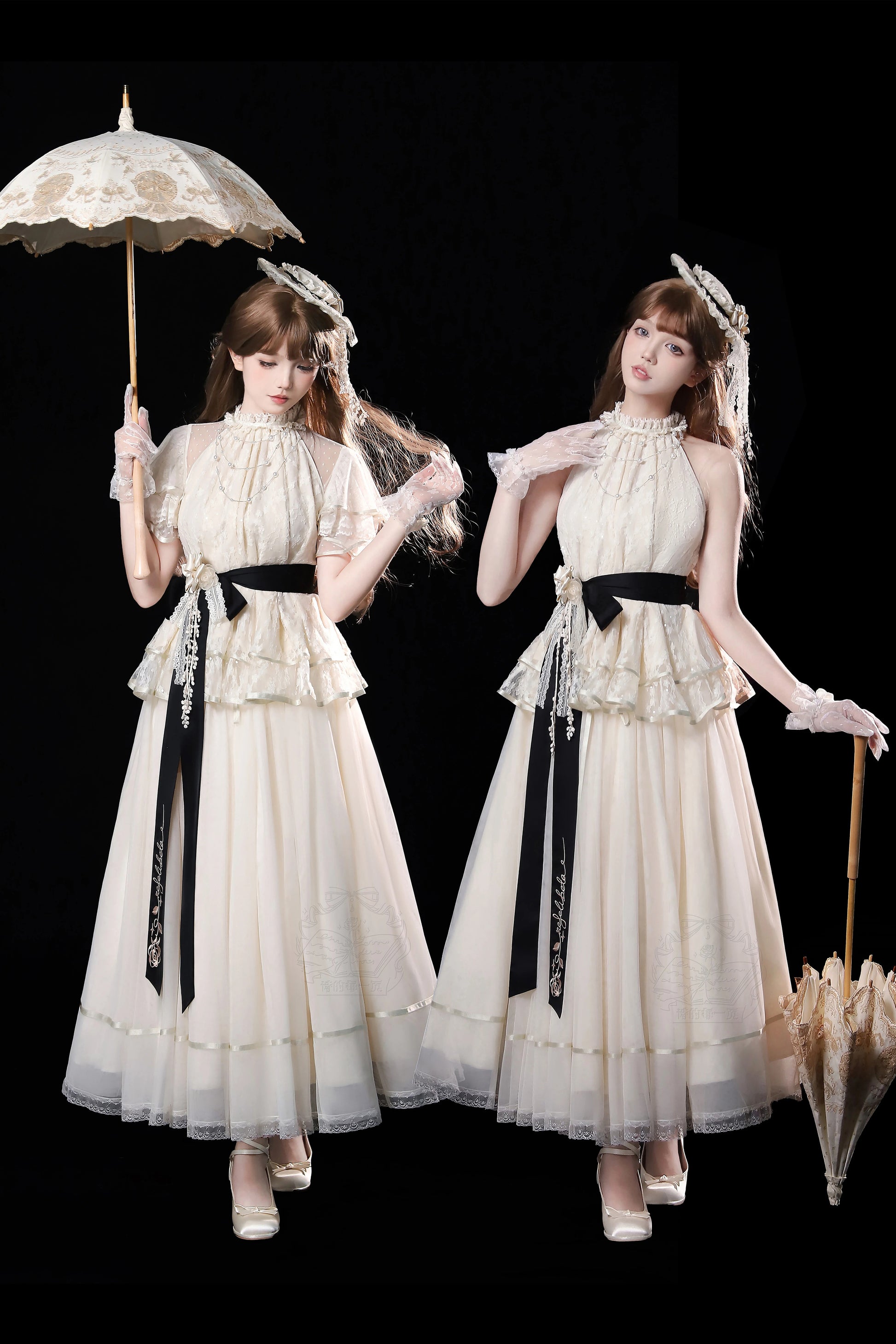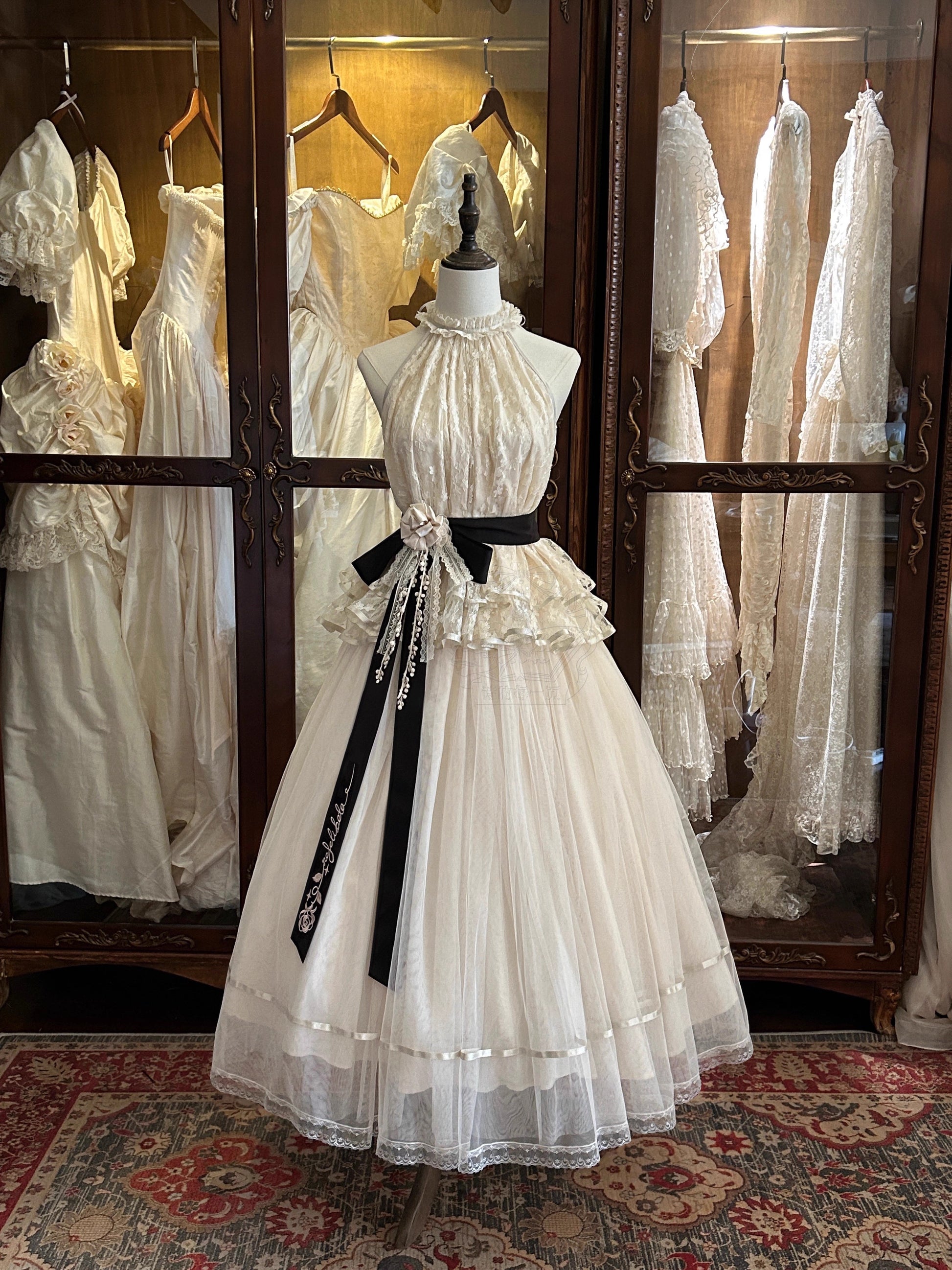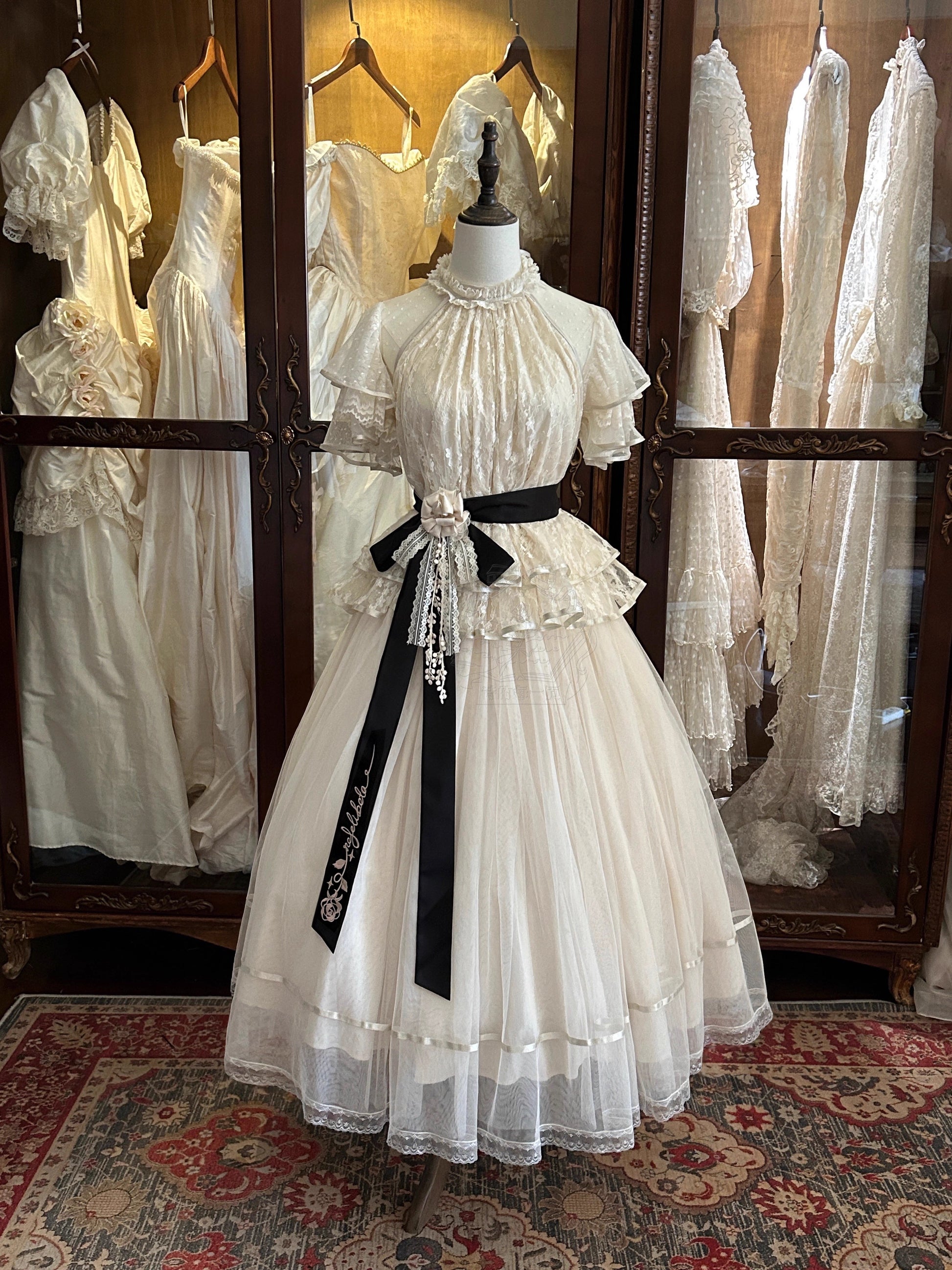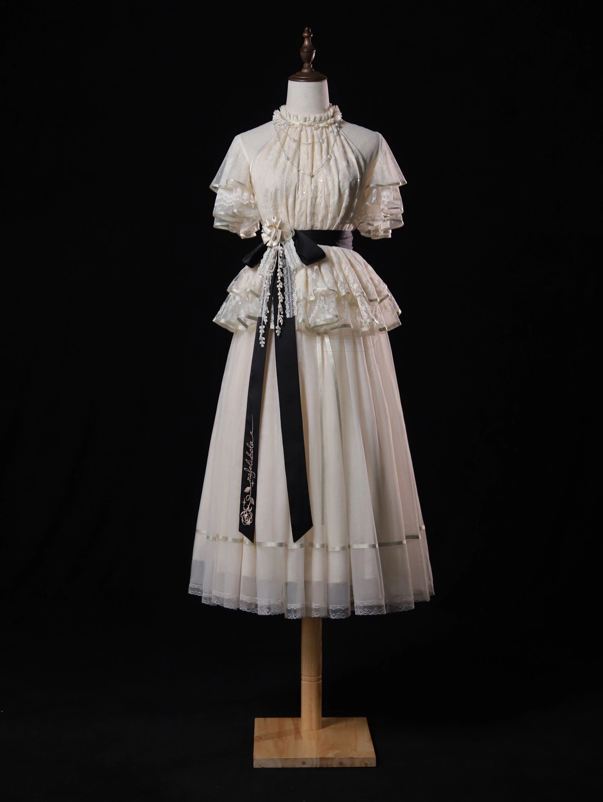※5点セット→フリル袖インナー、トップス、スカート、ベルト、花飾り