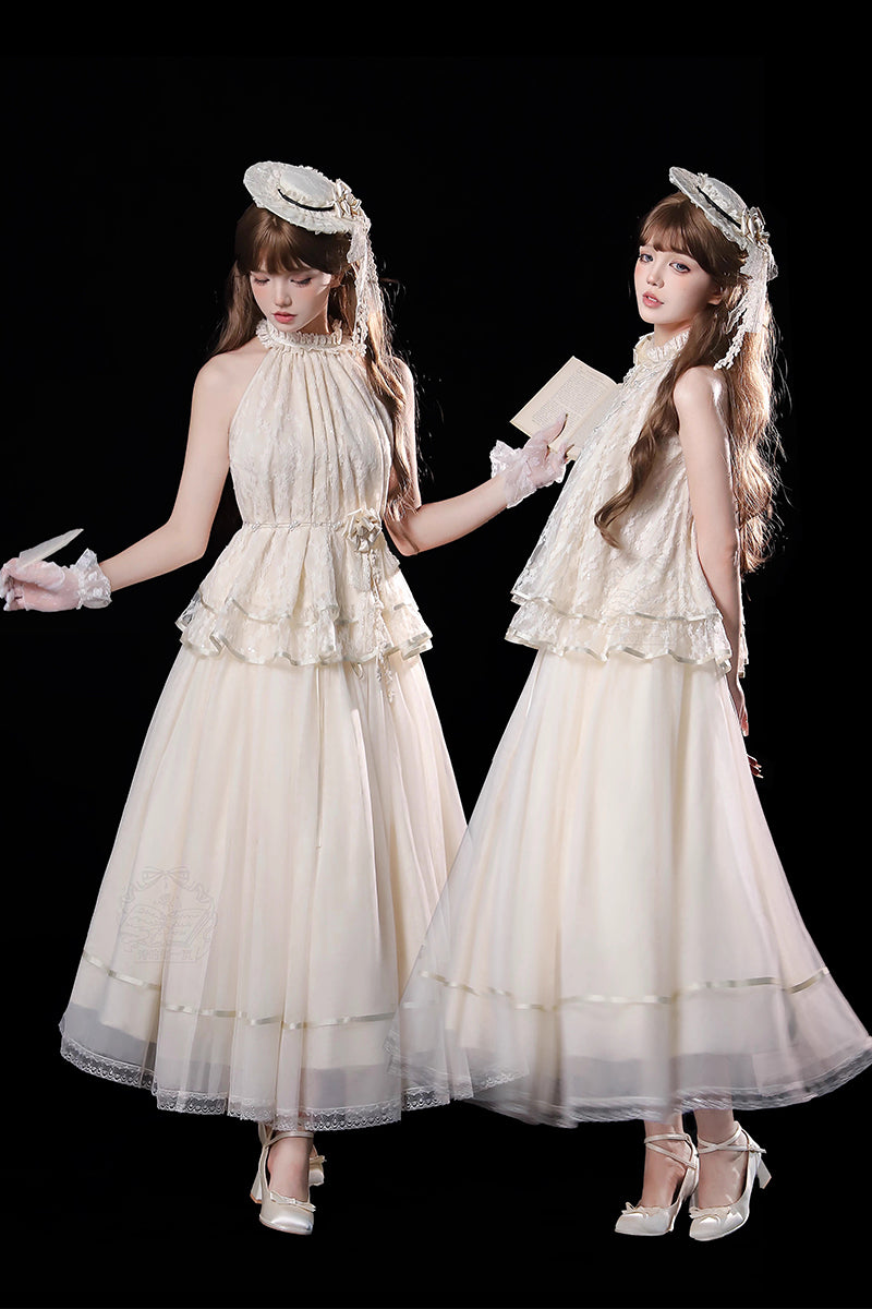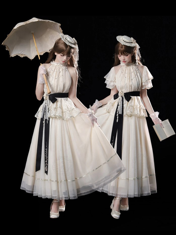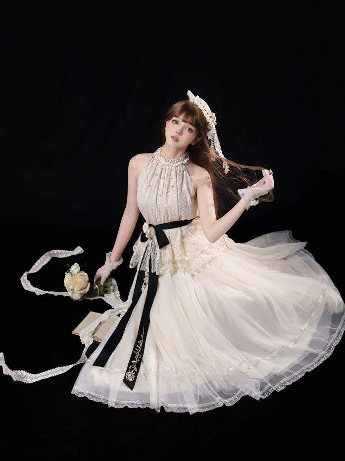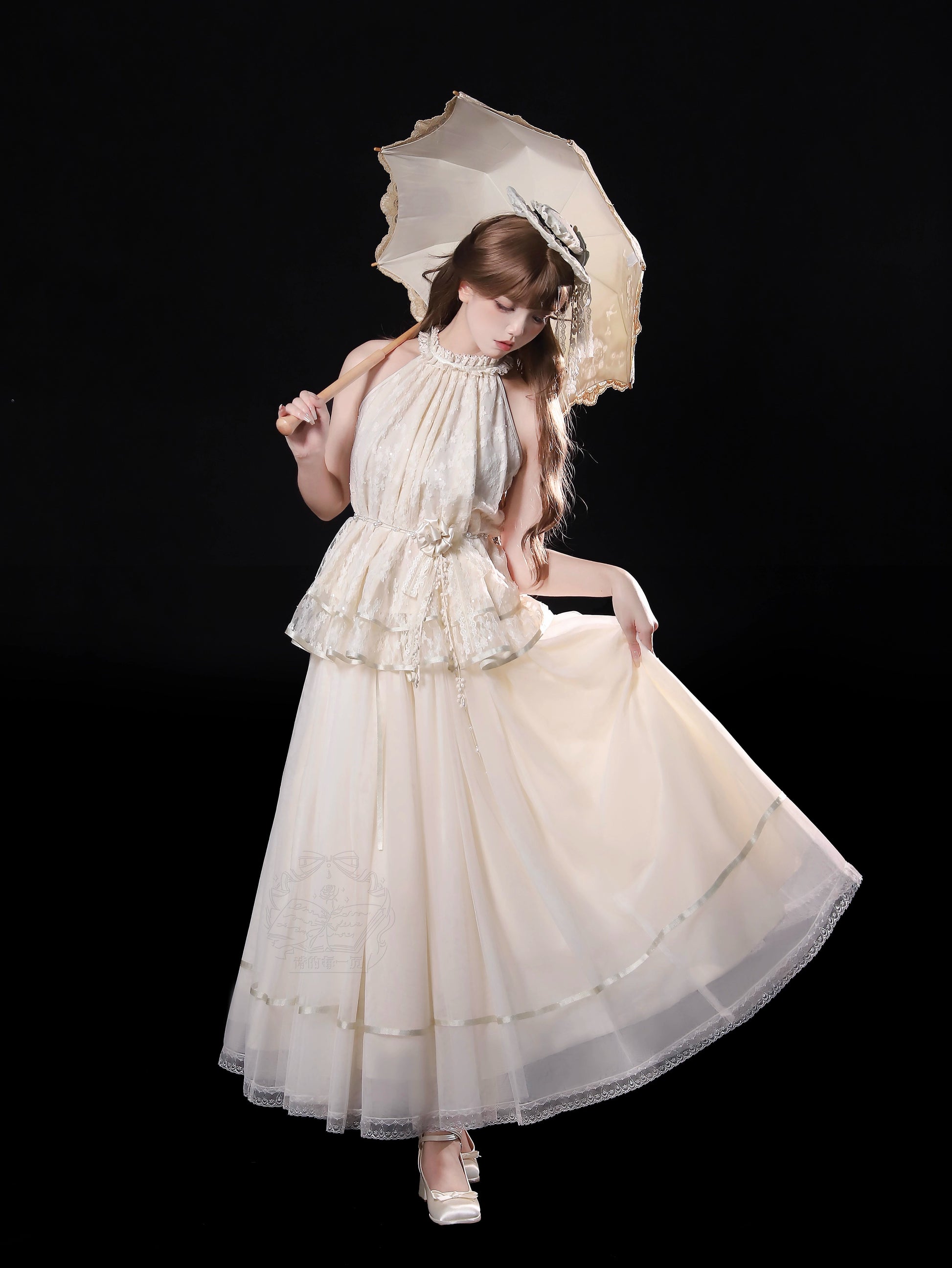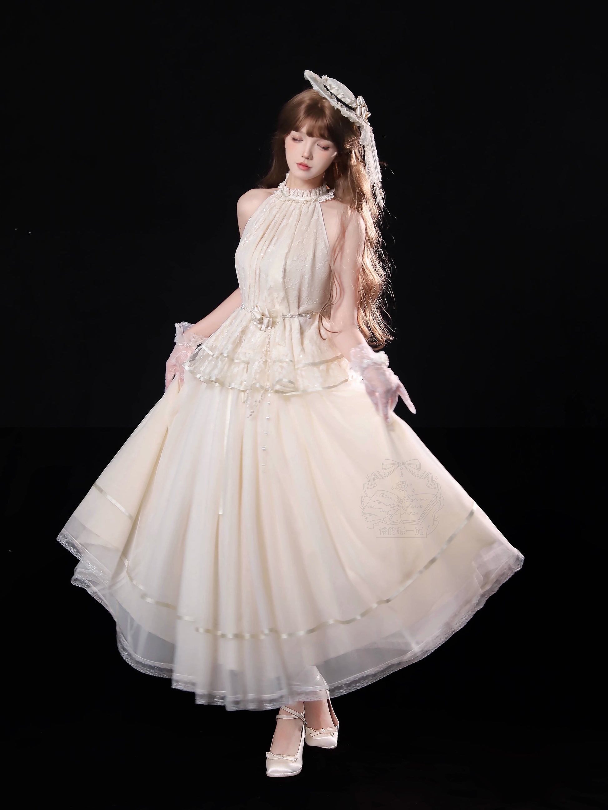 ※5点セット→フリル袖インナー、トップス、スカート、ベルト、花飾り