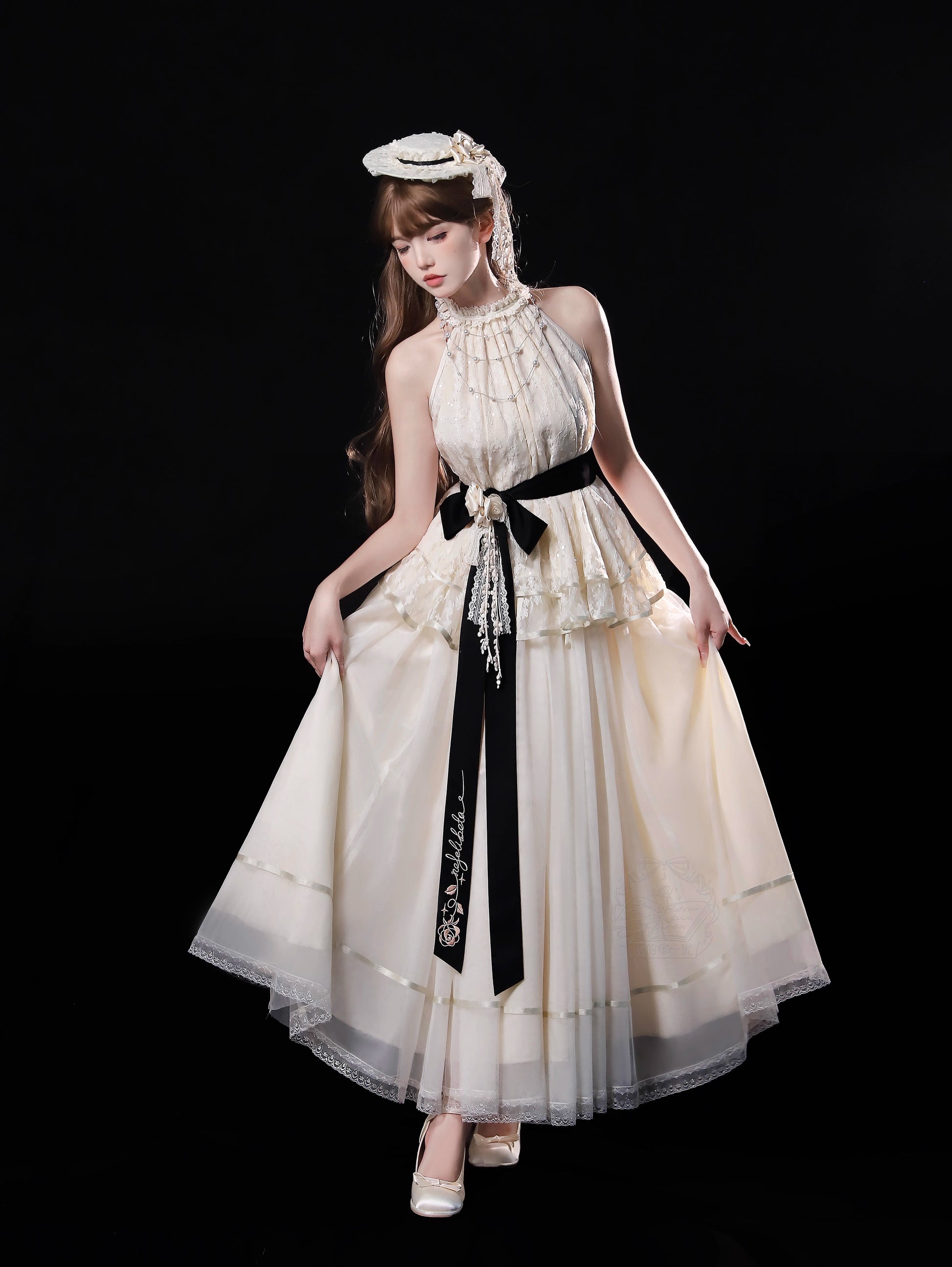 ※4点セット→トップス、スカート、ベルト、花飾り