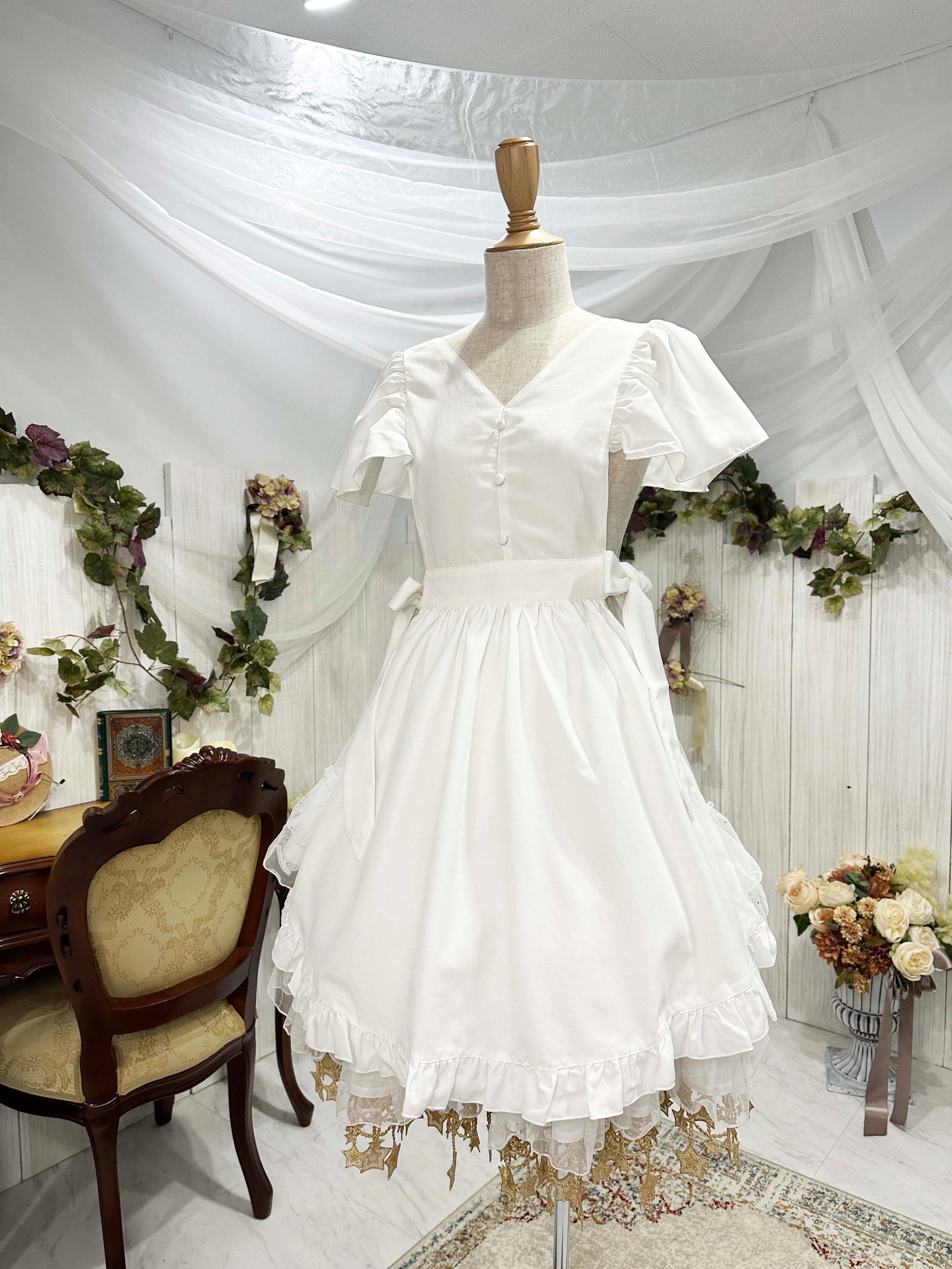 Flolia 肩フリルリバーシブルエプロン【Epetice】