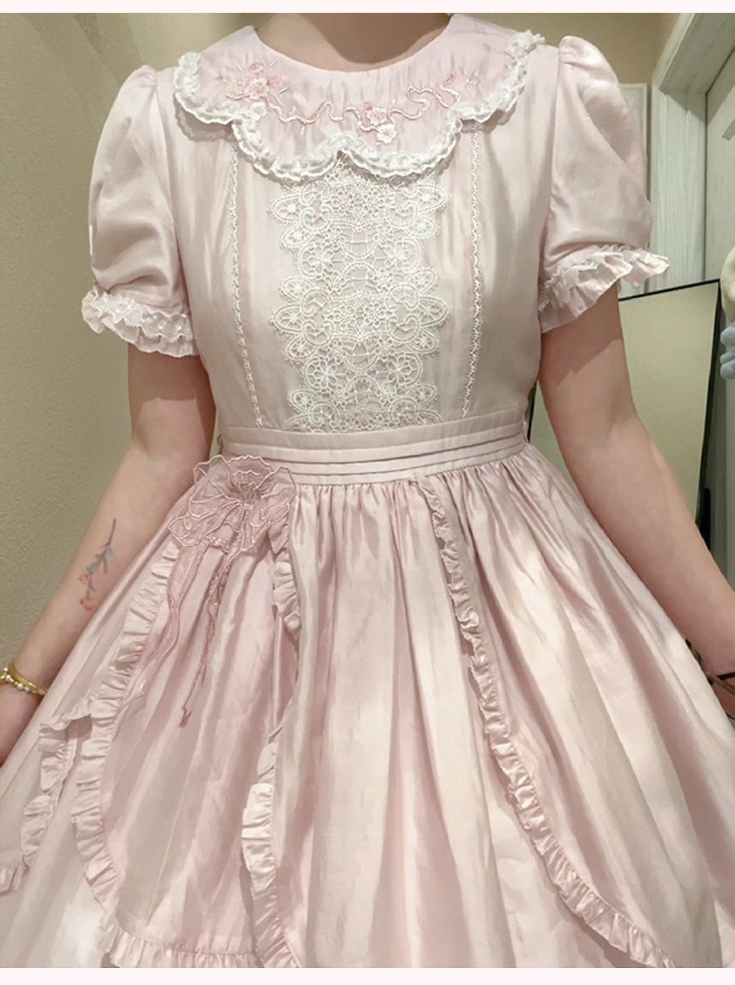 S胸囲86腰回り72裾丈94肩幅36-38袖丈18裾回り240