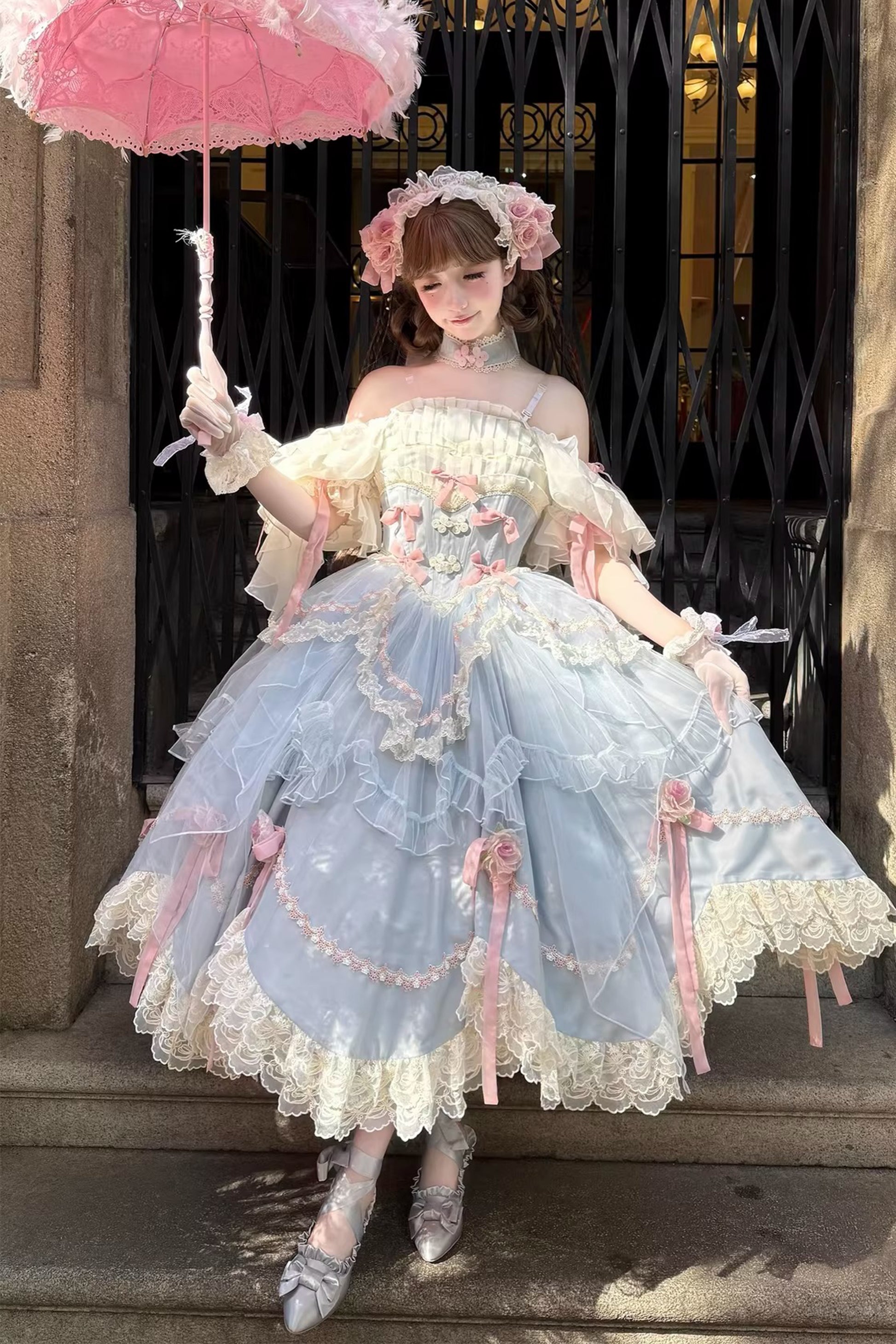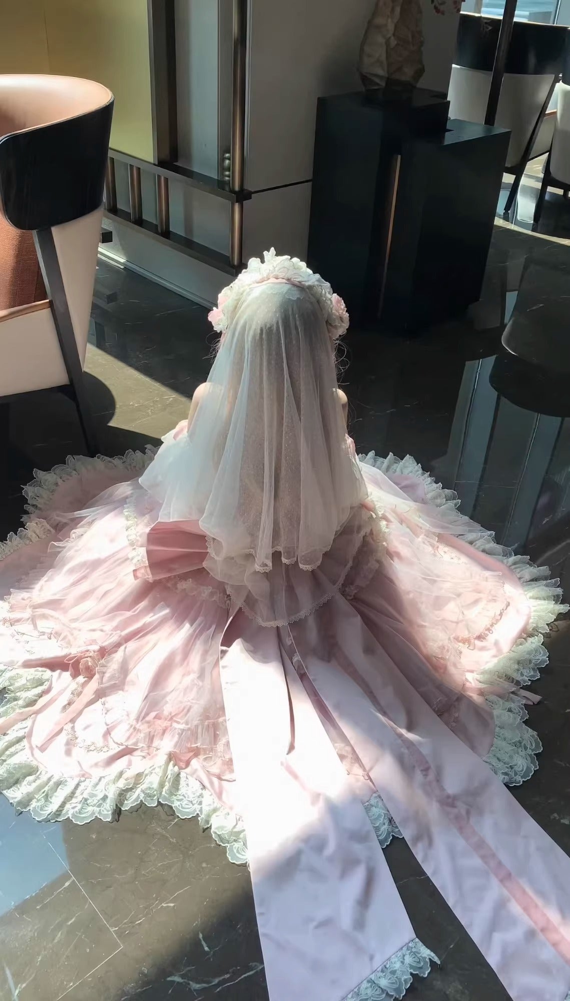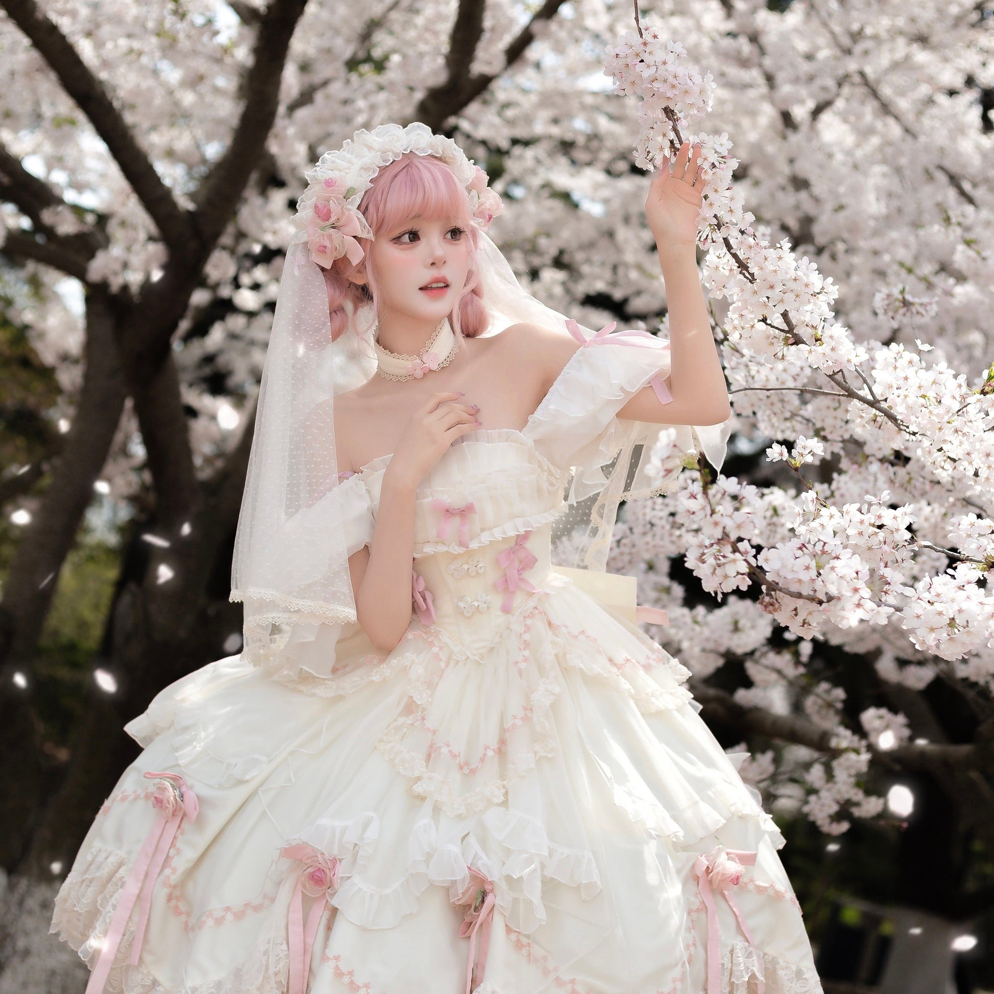※ワンピース、背中リボン、ヴェール、アクセサリー